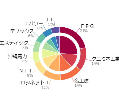 外周の円が評価額ベースの割合で、内側の円が取得価額ベースの割合になります。